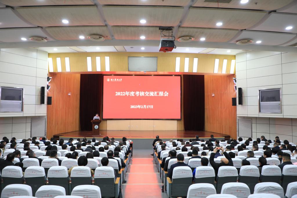 2月17日,學校召開2022年度考核交流匯報會。校黨政領導班子成員出席會議。全體中層干部、教師代表、各單位辦公室主任參加會議。匯報會由規劃處、學科辦負責人主持。