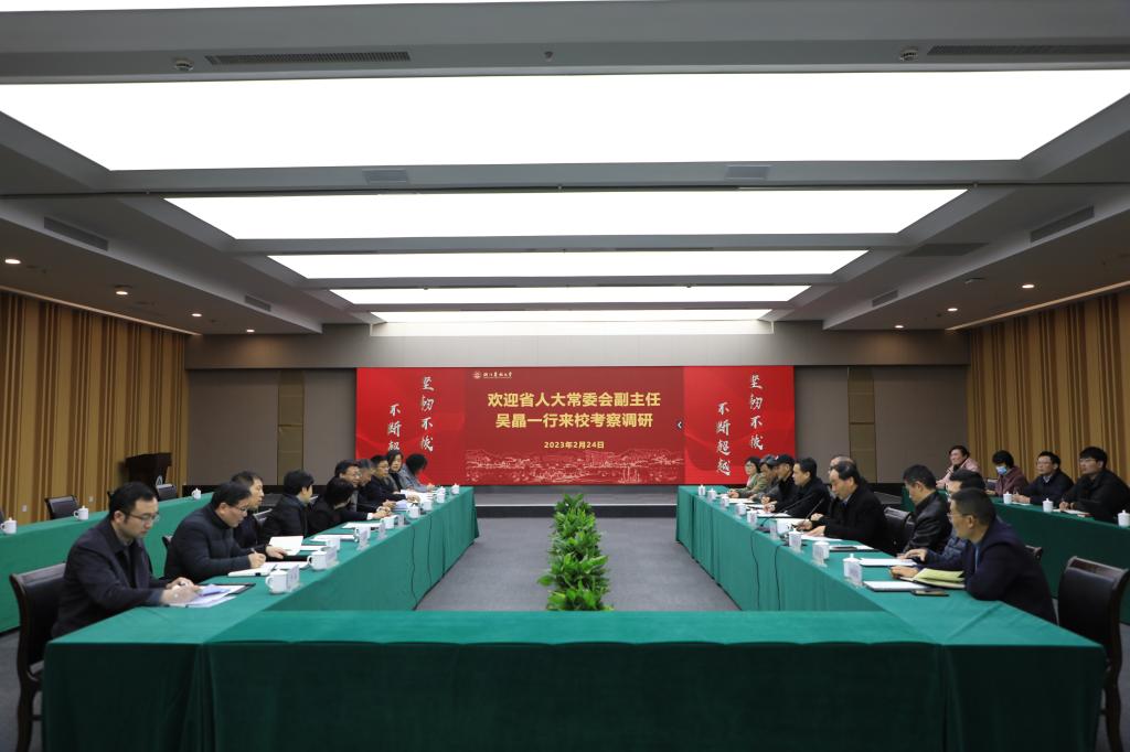 2月24日上午,省人大常委會副主任吳晶一行來校走訪調研。省人大常委會委員、教科文衛委主任委員陳根芳,省人大常委會委員、教科文衛委副主任委員錢曉芳、蔣國俊,省教育廳黨組成員、副廳長于永明,省科技廳副廳長周土法,以及省人大教科文衛辦公室有關人員參加調研。校黨委書記沈滿洪、國家重點實驗室主任周國模參加座談會。