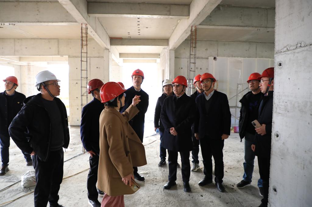 沈滿洪聽取了學校施工現場負責人、EPC總承包牽頭單位、施工單位、監理單位等現場負責人關于工程當前進展情況的詳細匯報,仔細查看了項目B12號樓一樓完成情況,樣板間、裝配式實施情況,實地檢查了工程建設質量和完成進度。
