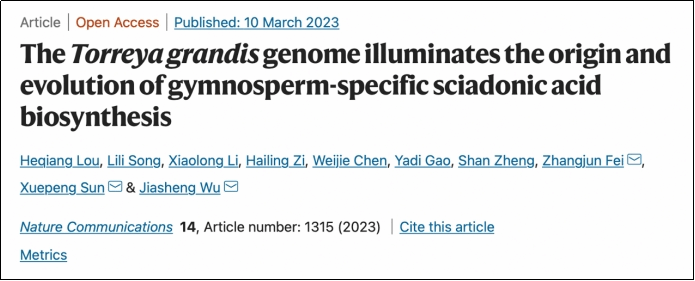 該研究以《TheTorreya grandisgenome illuminates the origin and evolution of gymnosperm-specific sciadonic acid biosynthesis》(《香榧基因組揭密了裸子植物特有成分金松酸生物合成的起源與進(jìn)化》)為題,揭示了我國(guó)南方特色經(jīng)濟(jì)干果香榧的遺傳密碼及裸子植物特有功能性多不飽和脂肪酸—金松酸的生物合成的分子和進(jìn)化機(jī)制,是對(duì)現(xiàn)有針葉植物基因組資源的重要補(bǔ)充,是植物基因組學(xué)和堅(jiān)果研究領(lǐng)域的突破性研究成果之一。這也是我校首篇以第一作者單位和通訊單位在Nature子刊上發(fā)表的研究論文。