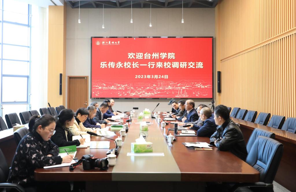 3月24日下午,臺州學院校長樂傳永一行來校調研交流。校黨委書記沈滿洪、校黨委副書記馮尚申陪同調研座談。