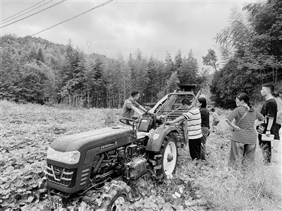 光機電工程學院學生在田間地頭測試研發樣機:4U-90型番薯振動挖掘式收獲機。
