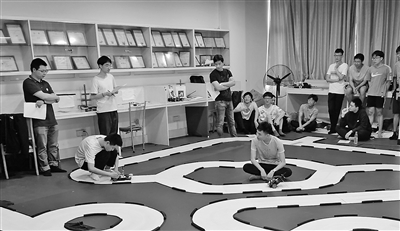光機電工程學院學生在測試研發的機器人小車。 本文圖片由浙江農林大學提供
