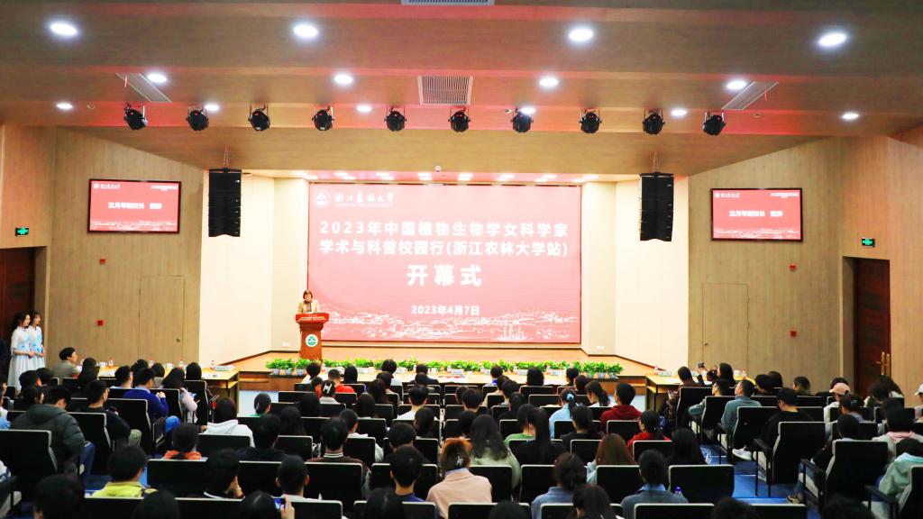 4月7日,2023年中國植物生物學(xué)女科學(xué)家學(xué)術(shù)與科普校園行系列活動(dòng)(浙江農(nóng)林大學(xué)站)在我校東湖校區(qū)舉行。本次活動(dòng)由中國植物生理與分子生物學(xué)學(xué)會(huì)女科學(xué)家分會(huì)、中國植物學(xué)會(huì)女植物科學(xué)家分會(huì)和中國細(xì)胞生物學(xué)學(xué)會(huì)科普工作委員會(huì)主辦,浙江農(nóng)林大學(xué)現(xiàn)代農(nóng)學(xué)院承辦。