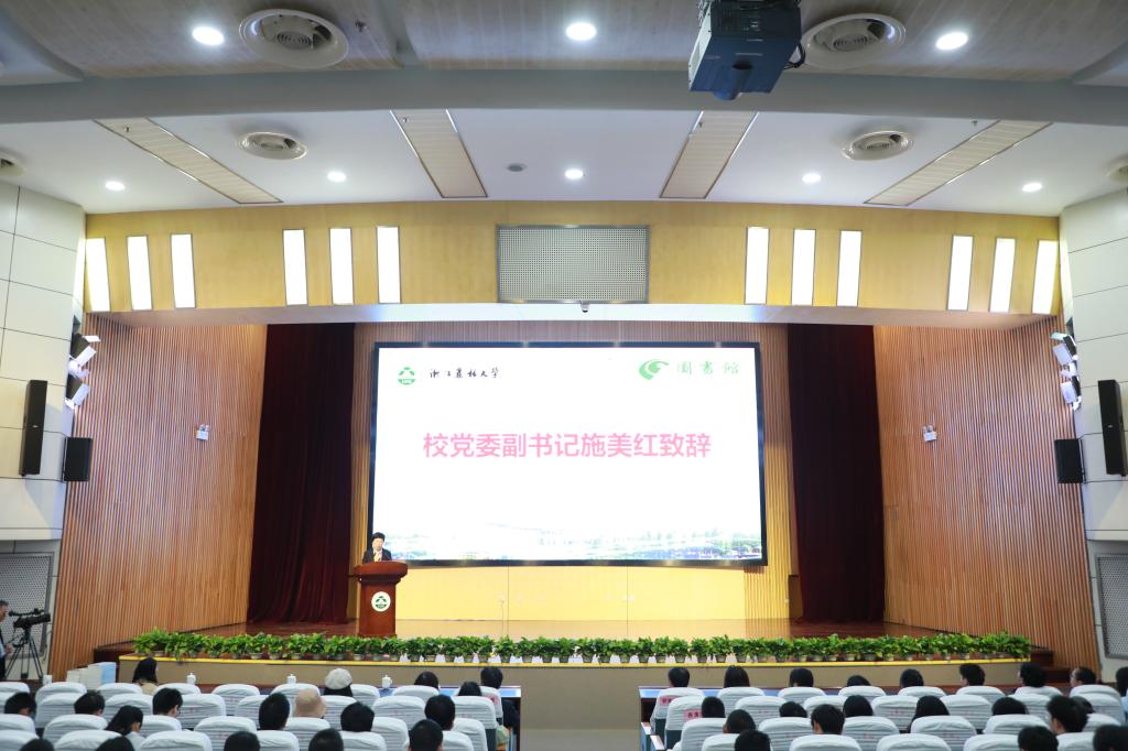施美紅在致辭中指出,本次讀書節(jié)活動是貫徹落實黨的二十大精神和習(xí)近平總書記關(guān)于“營造愛讀書、讀好書、善讀書的濃厚氛圍”重要指示精神,響應(yīng)教育部、中宣部等八部門關(guān)于《全國青少年學(xué)生讀書行動實施方案》的具體行動,是以書香校園建設(shè)促進學(xué)校高質(zhì)量發(fā)展、培養(yǎng)時代新人的重要舉措。她希望大家愛讀書,學(xué)而不倦,養(yǎng)成終身讀書、終身學(xué)習(xí)的好習(xí)慣;讀好書,學(xué)有所選,厚植家國情懷,養(yǎng)浩然之氣;善讀書,學(xué)以致用,做到知行合一、不斷提升創(chuàng)新能力。她要求全校上下大力倡導(dǎo)閱讀,做好示范,努力為師生創(chuàng)造更好的閱讀條件。