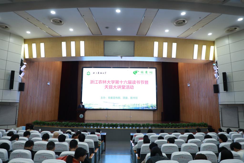 4月23日,校第十六屆讀書節(jié)開幕式暨天目大講堂在圖書館第一報告廳舉行。校黨委副書記施美紅出席并致辭。國家一級作家、茅盾文學(xué)獎得主、茶學(xué)院名譽院長王旭烽教授為師生解讀《望江南》。主辦單位負責(zé)人和師生代表近500人參加活動。