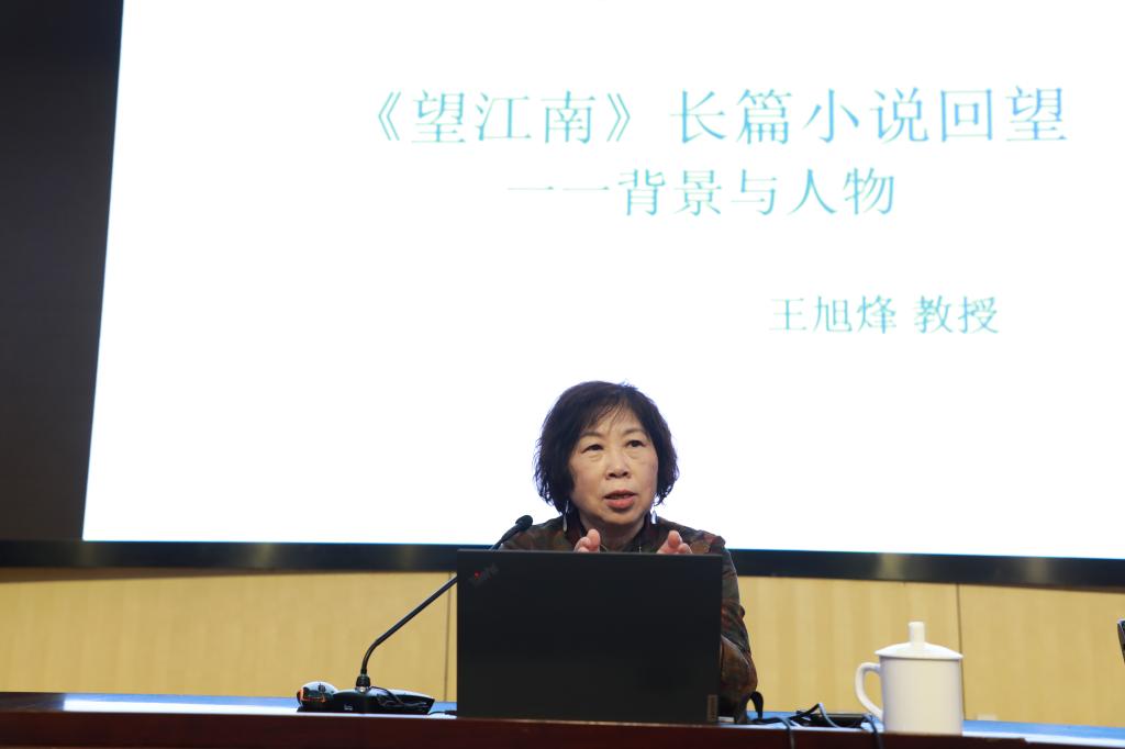 王旭烽教授應(yīng)邀做客天目大講堂,為師生解讀她的長篇小說《望江南》。“我從小在杭州長大,立志要建造一個紙上的杭州。”王旭烽教授向大家介紹了創(chuàng)作初衷,《望江南》這部作品是對《茶人三部曲》中缺失的一段歷史的補充,是時間維度上的完整。王旭烽從小說標題的解讀、空間與時間、選擇光陰的縫隙等方面對自己從《茶人三部曲》到《茶人四部曲》的創(chuàng)作過程,以及作品中的人物性格、故事脈絡(luò)作了詳盡的介紹,讓師生們體會到一部優(yōu)秀作品的問世,其間需要傾注巨大的努力。她還分享自己學(xué)習(xí)、生活和工作經(jīng)歷,希望青年學(xué)子提升對美的感知能力,不負青春年華。“腹有詩書氣自華”,她勉勵同學(xué)們在大學(xué)期間要多讀書,讀經(jīng)典,多思考,多實踐。