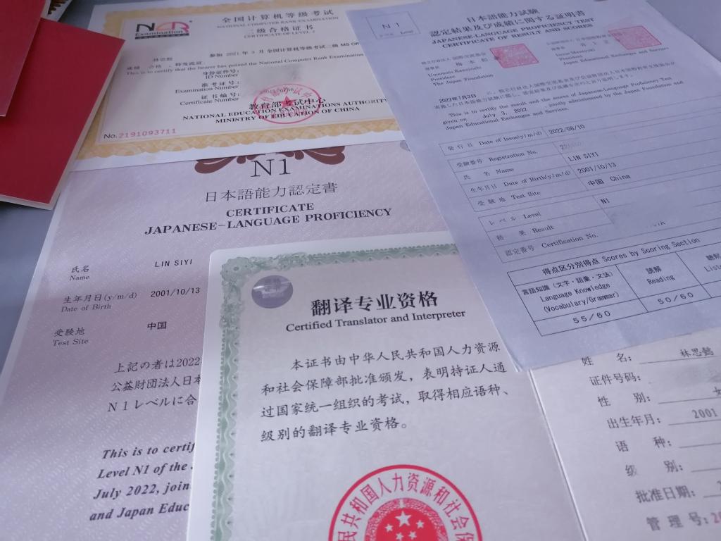 在300多天的備考期間,只要早上六點的鬧鐘響起,林思懿就如同機(jī)器人上了發(fā)條,從床上彈射而起,有條不紊地展開一天的學(xué)習(xí)。不管是嚴(yán)寒的冬日還是酷熱的夏天,她總是能夠克服困難和疲憊,每天默默背單詞和練習(xí)聽力,甚至暑假期間僅僅休息了兩天,分別是考CATTI(全國翻譯專業(yè)資格考試)和N1(日本語能力測試)。
