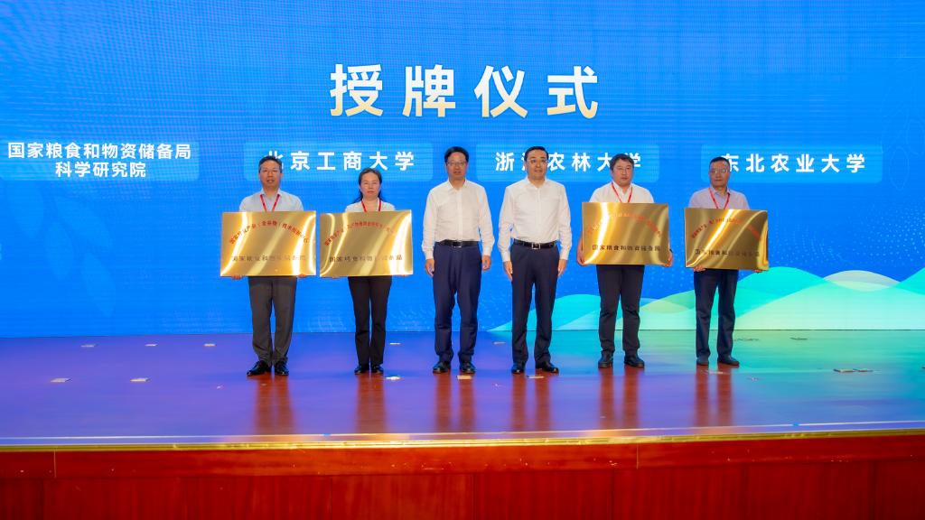 據悉,本次全國糧食和物資儲備科技活動周以“儲備安全 科學減損”為主題。浙江農林大學和國家糧食和物資儲備局科學院、北京工商大學、東北農業大學等4家單位被授予國家糧食產業技術創新中心。叢亮和費高云為4家中心代表授牌。