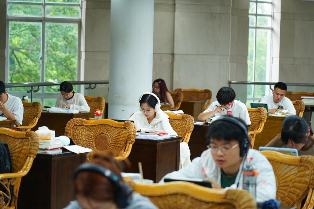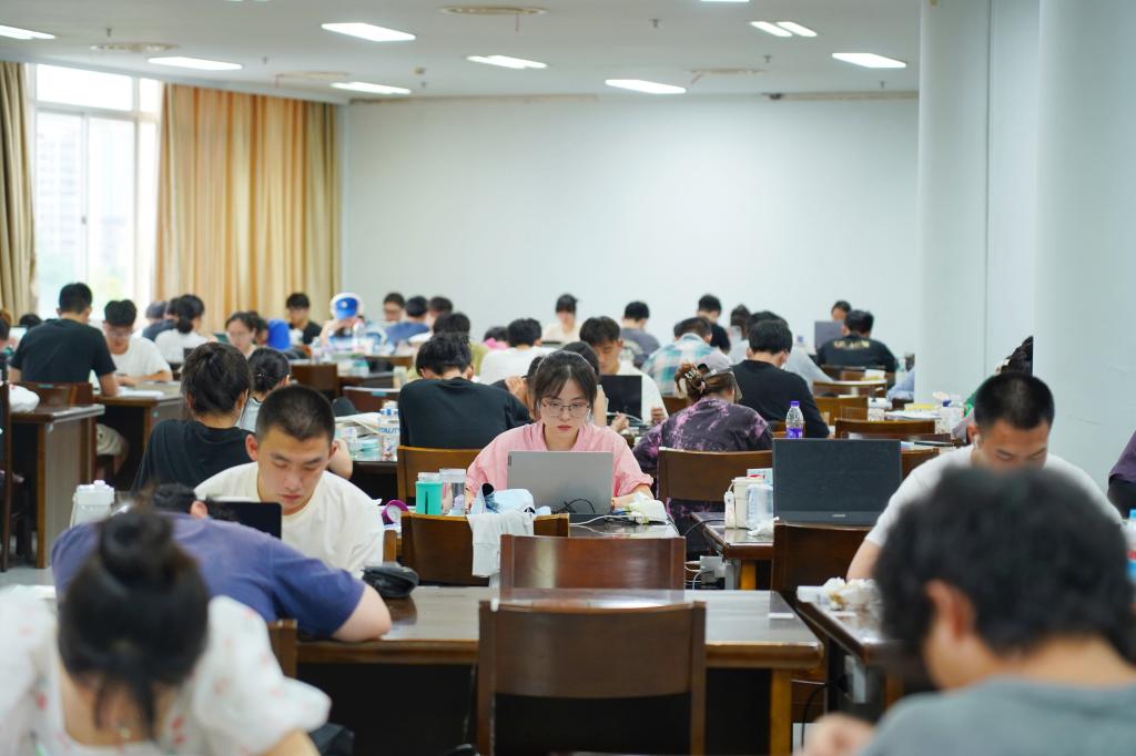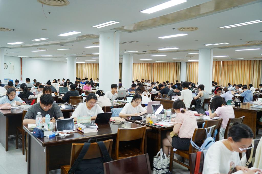 室外翻騰的熱浪,一如他們心中的信念和熱烈的青春,圖書館、自習室、寢室、樓道,處處都有他們認真備考的身影,同學們或是準備考研考公,埋頭于在繁雜的知識點中,向夢想一步步邁進;或是閱讀文獻,增加知識貯備,努力提升自我。日復一日的學習生活是單調的,但少年有夢,不止于心動,更是付諸行動。