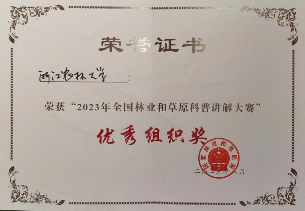 8月29日,2023年全國(guó)林業(yè)和草原科普講解大賽總決賽在北京中國(guó)園林博物館舉行。我校3名選手代表學(xué)校參賽并全部獲獎(jiǎng),其中張園彬、黃璽潔獲一等獎(jiǎng)、張韻獲三等獎(jiǎng)。學(xué)校獲優(yōu)秀組織獎(jiǎng)。