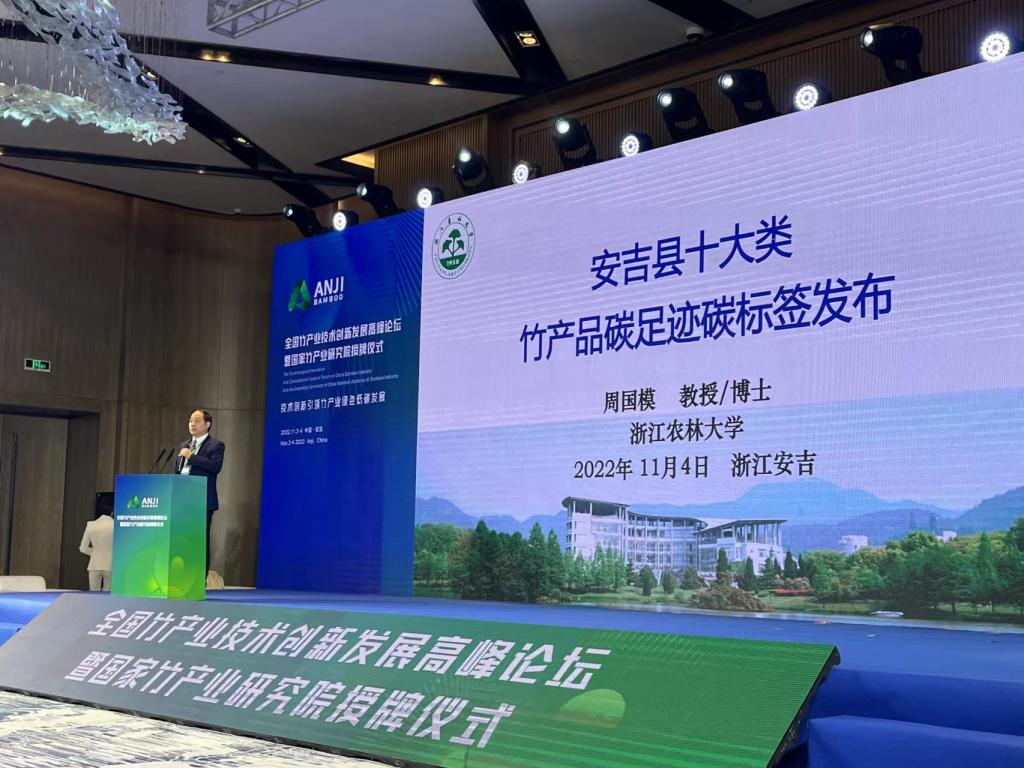 11月4日上午,在全國竹產業技術創新發展高峰論壇上,安吉縣正式發布十大類竹產品碳足跡碳標簽。這也標志著安吉的竹產品又有了“碳標簽”這張新名片。