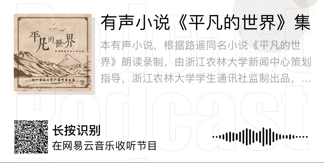 11月17日,有聲小說《平凡的世界》迎來了它的首發(fā)。所有參與到這部作品制作中以及給予它鼓勵的人們都值得一句辛苦和感謝,也希望這一部陪伴了浙農(nóng)林大幾個春秋的作品能夠繼續(xù)為廣大師生和聽眾們帶來思考和激勵、共鳴和奮進。