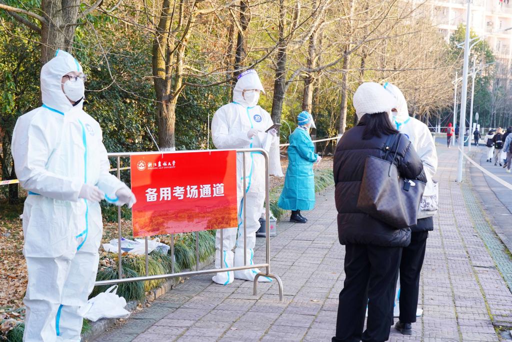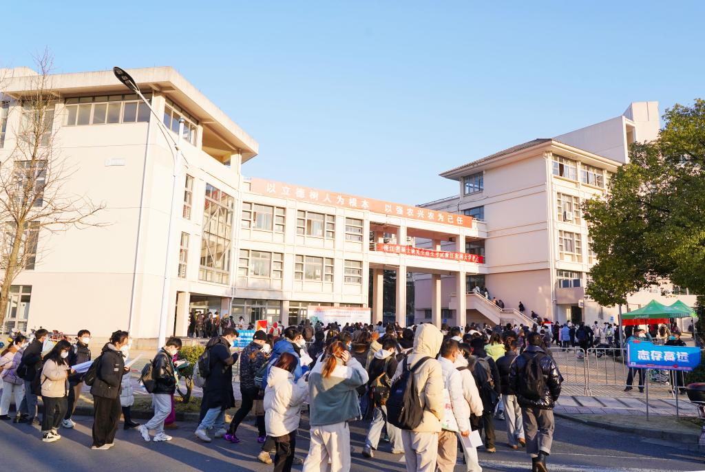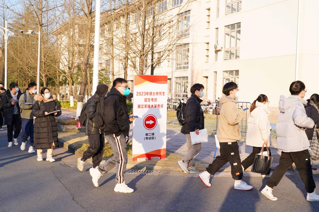 12月24日,2023年全國碩士研究生招生考試正式開考。浙江農林大學2023年碩士研究生招生考試考點,考生們通過身份核驗、亮碼、測溫等環節有序進入校園,在考場外規定區域排隊等候進入考場,并在排隊期間進行最后的緊張復習。今年,浙江農林大學的考生超過2500人。為了做好此次考試的疫情防控、考務組織以及考生服務工作,學校專門成立了工作專班,制定了詳細工作方案以及各環節各點位的細化分解方案,確??荚嚬ぷ饔行蜻M行。