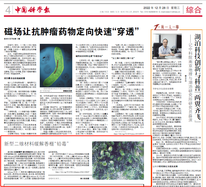 MXene 是一類新型的具有類石墨烯結構的二維材料,由過渡金屬碳化物 、氮化物或碳氮化物構成。相關研究結果不僅為環境納米材料在植物根細胞中固定鉛離子的作用機制提供了理論依據,同時對于擴展MXene應用領域具有重要意義。