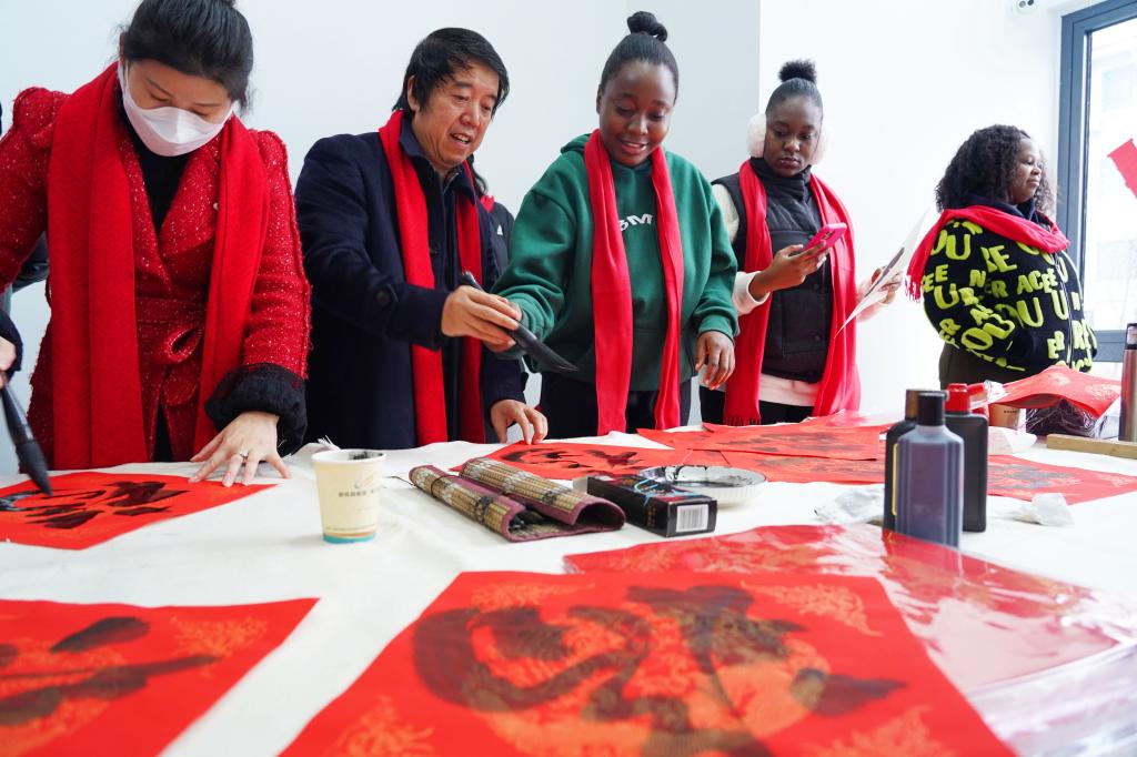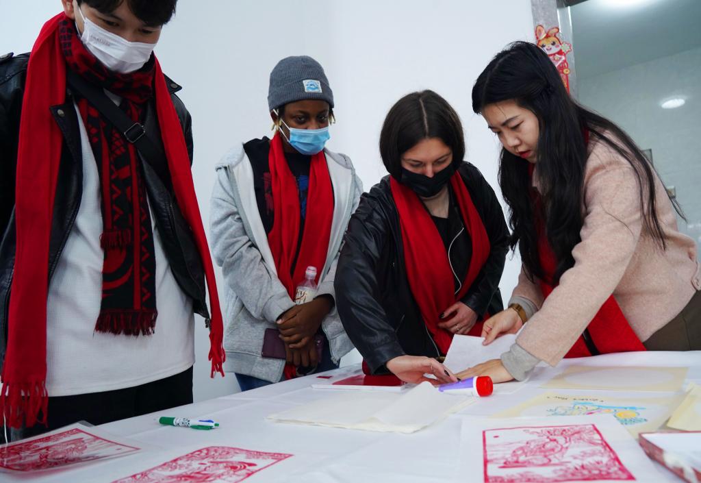 近日,在學校國際教育學院邀請到的各地書畫導師指導下,留學生們聚在一起學習寫福字、拓年畫、掛燈籠、貼窗花……提前感受“中國年”的濃濃氛圍。