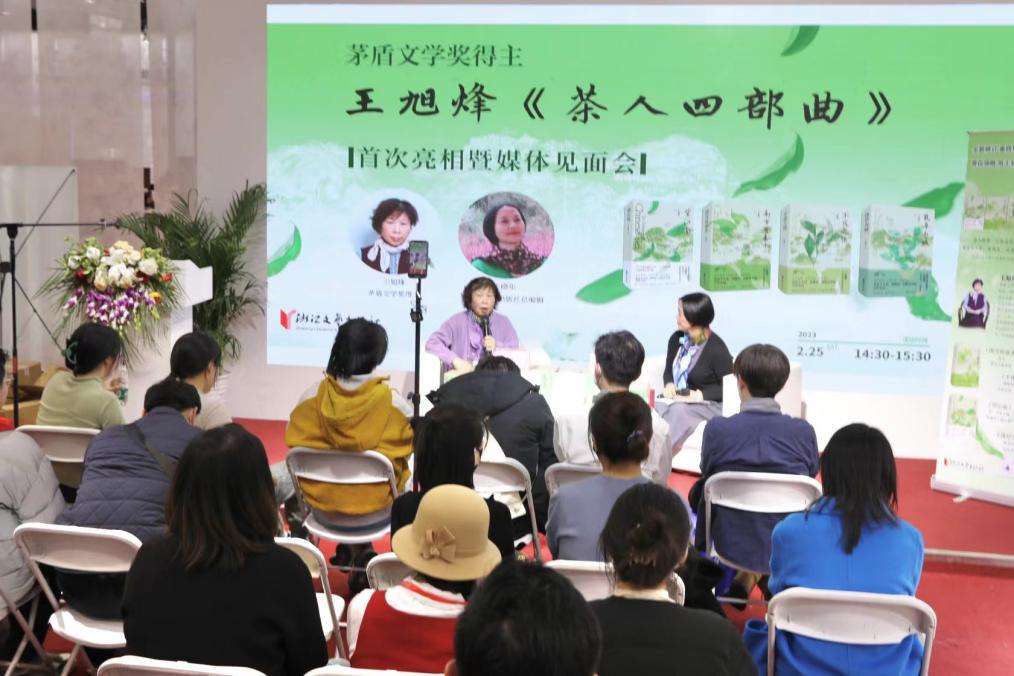 2月25日,由浙江文藝出版社主辦的茅盾文學(xué)獎(jiǎng)得主王旭烽代表作品“茶人四部曲”首次亮相暨媒體見(jiàn)面會(huì),在北京圖書(shū)訂貨會(huì)浙江展區(qū)舉行。作者王旭烽、浙江文藝出版社總編輯王曉樂(lè)與線上線下的讀者共同分享“茶人四部曲”的創(chuàng)作理念、創(chuàng)作歷程和出版故事。