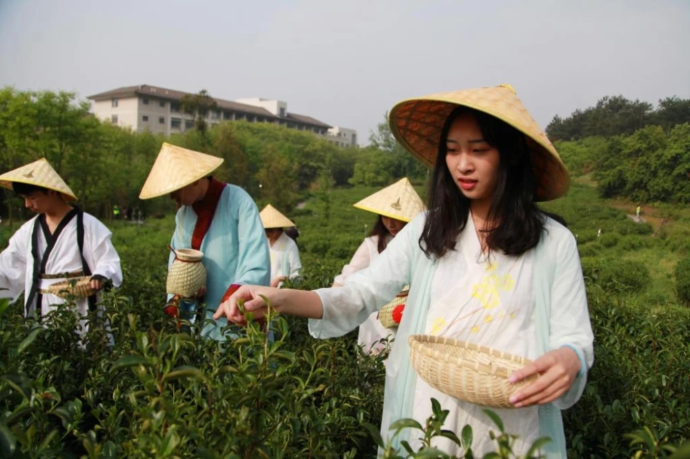 浙江農(nóng)林大學(xué)學(xué)生正在參加采茶勞動。浙江農(nóng)林大學(xué) 供圖