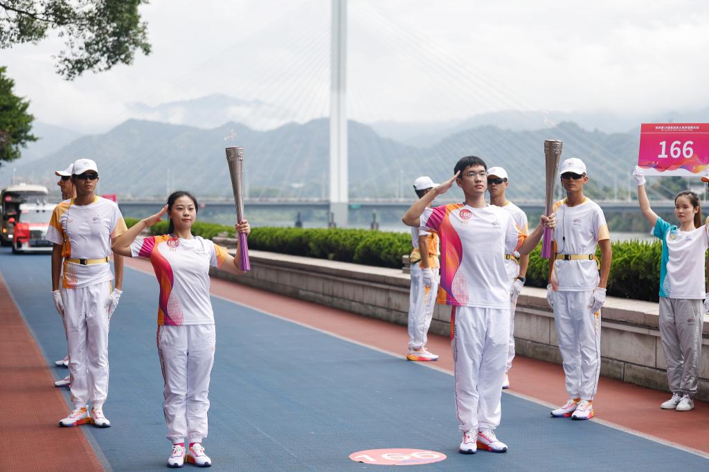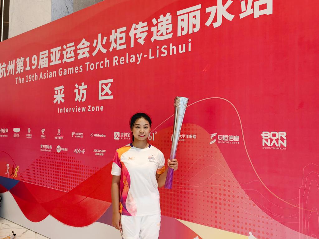 9月16日,杭州亞運會火炬傳遞儀式麗水站在浙江麗水舉行。第165棒火炬手吳素青來自浙江農林大學。