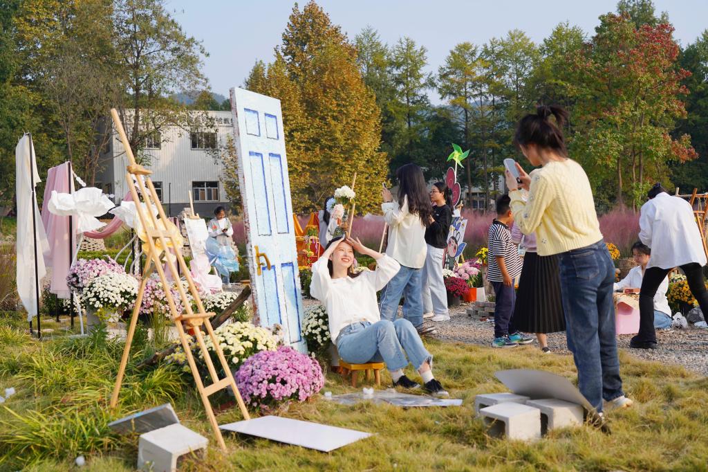10月29日,浙江農林大學師生與菊花合影。當日,在該校園林學院教育教學實踐基地里,300多個品種的數萬朵菊花爭相開放,把秋季校園點綴得格外美麗,吸引眾多師生駐足觀賞。