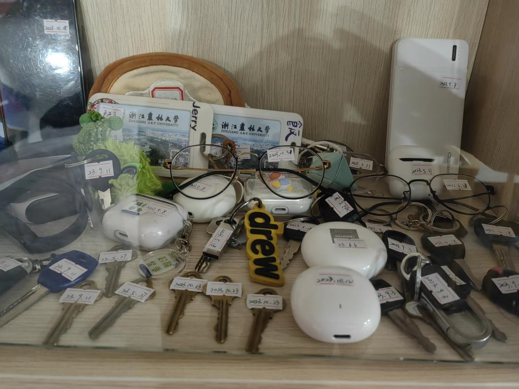 撿到東西盡快找到失主并歸還,已經成為易春華和同事們工作的重要組成部分。據不完全統計,近三年,浙江農林大學后勤的教室保潔阿姨已先后撿到手機98個、筆記本電腦17臺、平板18臺、硬盤42個、手表14個、耳機57個、優盤鼠標充電寶361個,其他還有銀行卡、收音機、駕駛證、身份證、眼鏡、鑰匙、書籍以及大量現金……近三年拾到物品的總價值超過50萬元,而且能找到失主的都還給了失主。