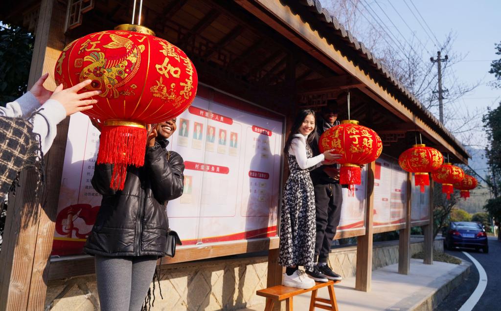 浙江農林大學30多名留學生來到杭州市臨安區錦北街道的泥川村,和當地村民一起剪窗花、寫春聯、掛燈籠、炒花生、打麻滋、包餃子、敲龍鼓,提前感受濃濃的“中國年”。