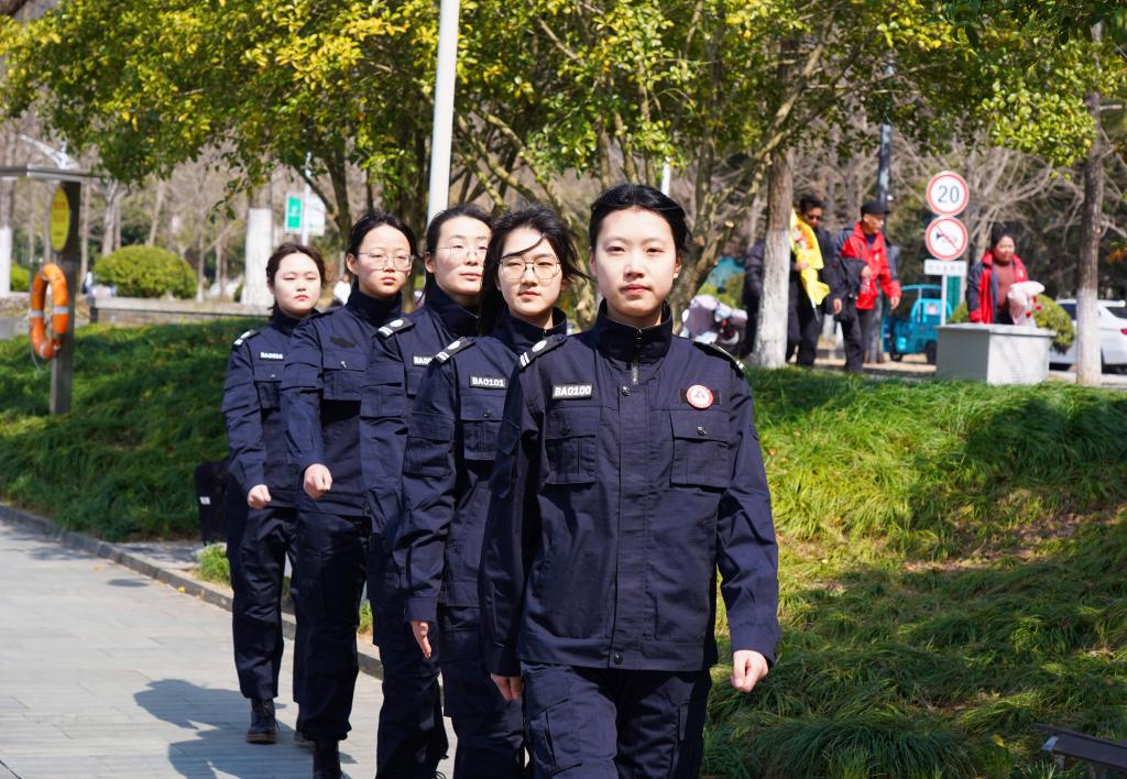 2024年3月8日,浙江農林大學“雷鋒班”女子巡邏隊成立,首批5名女子巡邏隊隊員正式上崗巡邏。浙江農林大學“雷鋒班”女子巡邏隊由該校“雷鋒班”的女生志愿者組成,主要利用課余時間進行校園巡邏,重點是監督勸阻不文明現象、發現上報安全隱患等。(中國教育報-中國教育新聞網 通訊員 陳勝偉 攝)