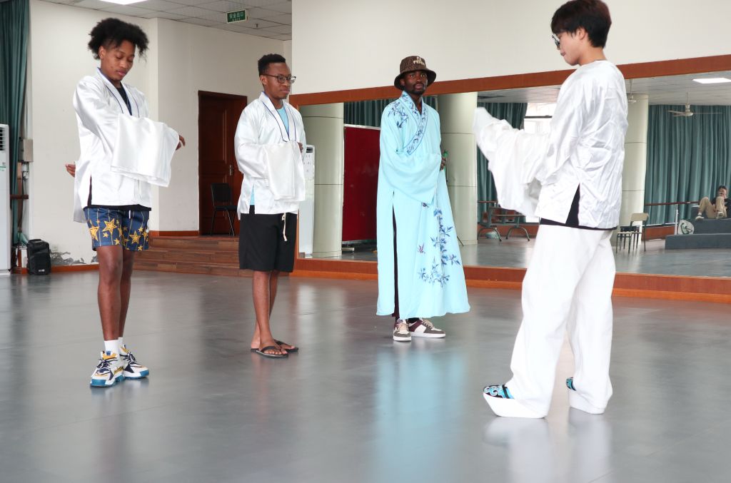 活動中,湯俊、張晗韻兩位同學還對國際留學生進行了基礎越劇身段教學與唱腔訓練。留學生同學穿上戲服,一招一式雖顯生疏,但憑借滿腔熱情與努力學習,迅速對基礎越劇身段上了手。值得一提的是,在進行唱段學習時,留學生還以良好的條件,跟著中國學生的聲音,將越劇唱得朗朗上口,獲得一致好評。