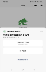 2.獲取微信授權(quán):在獲取授權(quán)的同時(shí),用戶(hù)需要勾選《浙農(nóng)林人員車(chē)輛入校須知》。