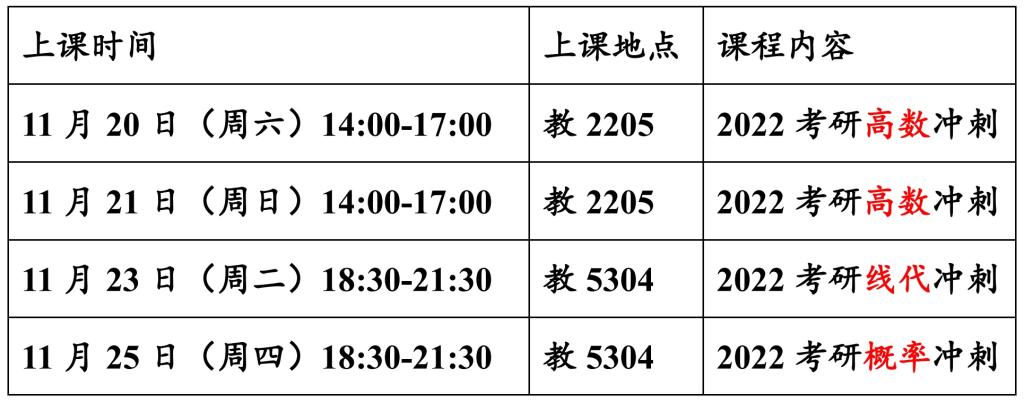 ?考研數學沖刺課表: