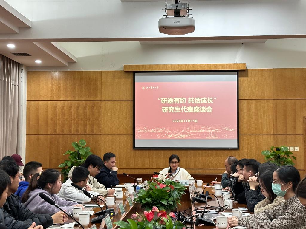 11月14日,研究生院在行政樓302會議室開展“研途有約,共話成長”研究生代表座談會,座談會由研究生院院長宋麗麗主持。