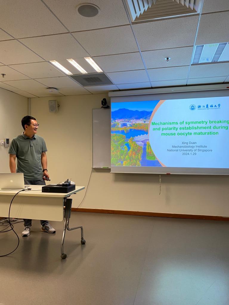 應新加坡國立大學力生物學研究所(Mechanobiology Institute, National University of Singapore)負責人Rong Li教授的邀請,近日,動科動醫學院段星教授專程赴新加坡國立大學作題為“Mechanisms of symmetry breaking and polarity establishment during mouse oocyte maturation”的學術報告。