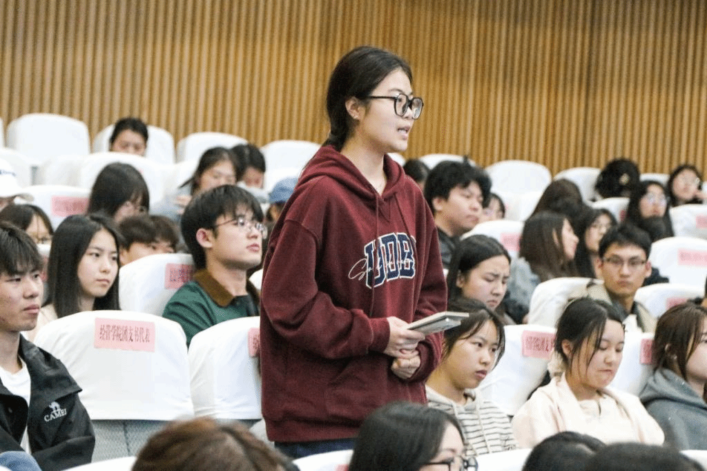 講座深入淺出、旁征博引,使得在座的團干部對新質生產力的內涵要義有了更加深刻的理解和認識。講座過程中,參會師生積極交流互動,就“如何運用所學的專業知識發展綠色生產力”“團支部如何為青年提供發展新質生產力的廣闊平臺”“如何具體運用人工新型智能技術點燃青年們的‘創新引擎’”等問題進行提問。林江一一耐心解答并鼓勵團學干部引領青年在專業領域建功立業,激發青年掌握關鍵核心技術,擁抱未來產業,為發展新質生產力貢獻青春力量。
