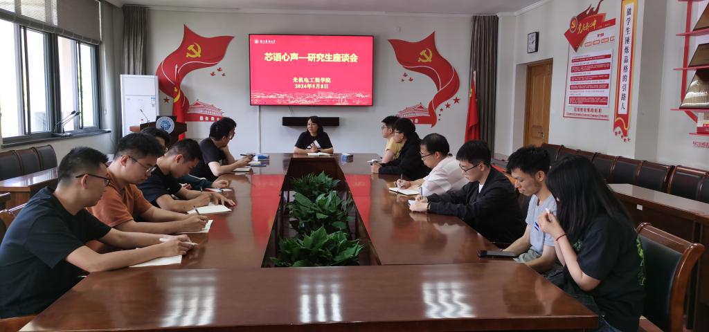 5月8日下午,光機電學院在學14-514開展“芯語心聲”研究生座談會,學院分管學生工作負責人、研究生輔導員及研究生各班級、學習室、寢室等代表參加座談會。