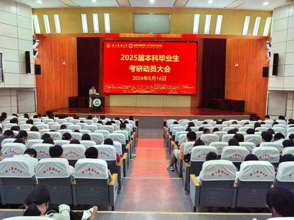 5月16日下午,食健學院在東湖校區圖書館第一報告廳舉行2025屆本科畢業生考研動員大會。學院相關負責人、食品學科研究生教育負責人、學院研究生秘書、輔導員等老師出席現場,優秀考研學子代表和2025屆全體畢業生參加此次大會。