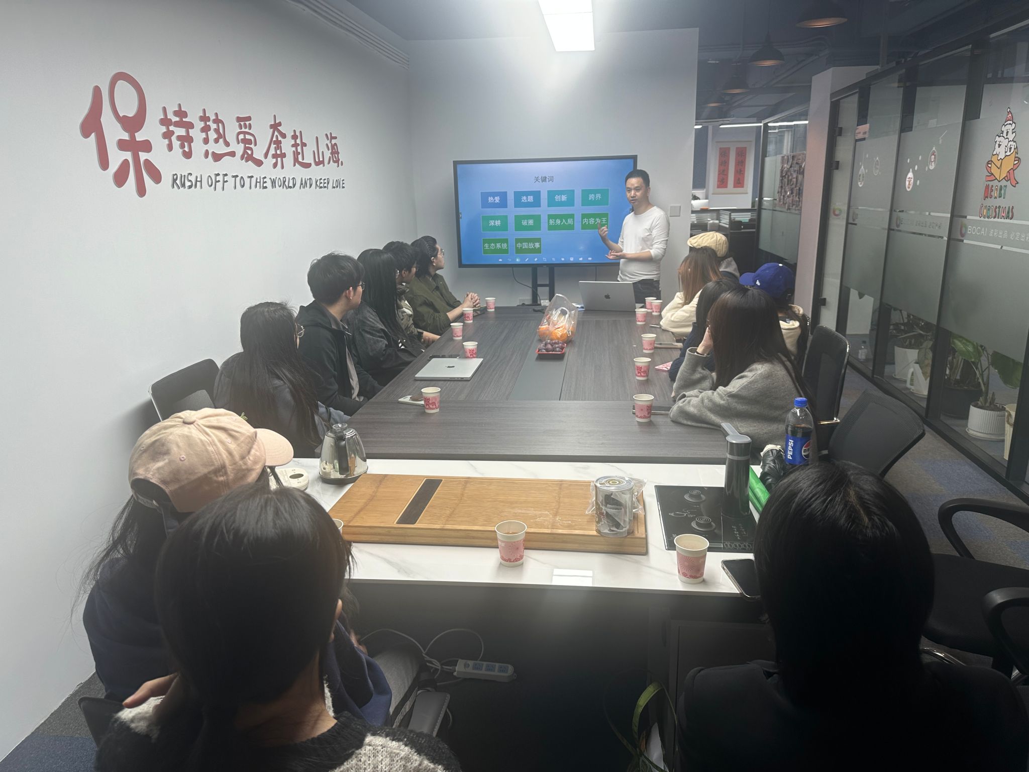 杭州視覺部落創始人周勇通過菌物攝影實踐與教育,為藝術與科學的跨界融合提供了范本,也為年輕攝影師樹立了“以專業賦能創作”的標桿。花果山文化傳媒公司主創團隊向師生介紹了公司在影視制作、新媒體運營及數字內容創作等領域的核心業務,并詳細解讀了企業的人才需求方向。現場學生踴躍提問,圍繞職業發展路徑、實習崗位要求等問題與企業代表深入探討。