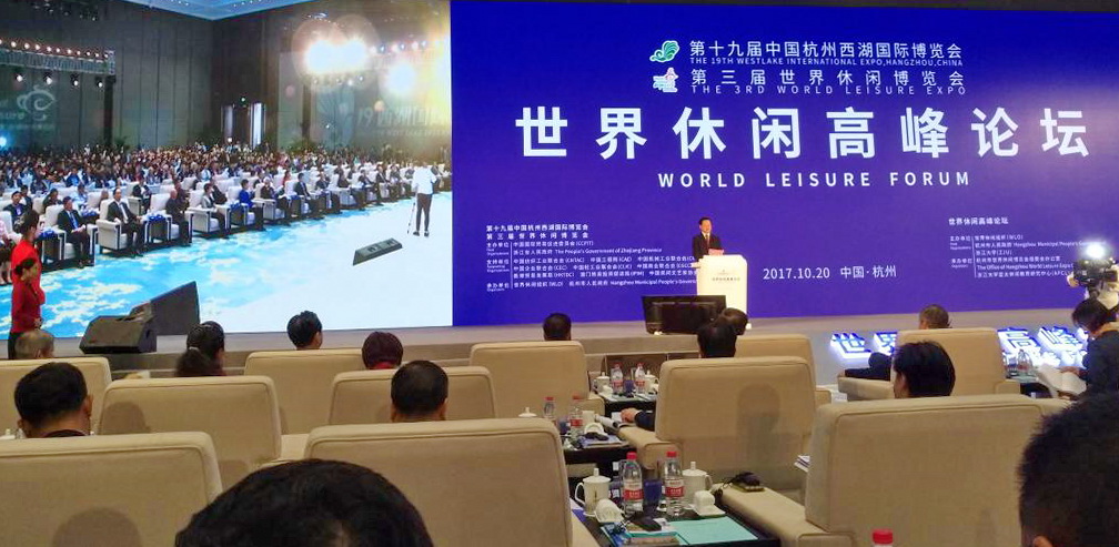 10月20日-21日,世界休閑高峰論壇在杭州國際博覽中心(以下簡稱“國博中心”)召開。來自美國、西班牙、加拿大等多個國家的世界休閑組織理事,國內頂尖休閑類專家、各城市代表等參加會議。我校園林學院李健、陳美愛等老師應邀參加并作主題發言。