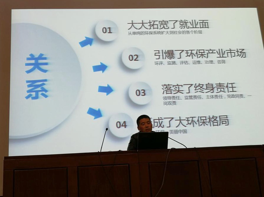 錢衛敏以中央環保督查工作為切入點,介紹了中央環保督查的背景、目的,闡述了我國環保工作的嚴峻形式和中央對環保的重視程度,展示了先進的現代化環境監測技術和環保專業的光明前景,希望同學們認真學習專業理論知識,苦練專業技能,不負大學的美好時光,為環保事業做出貢獻!
