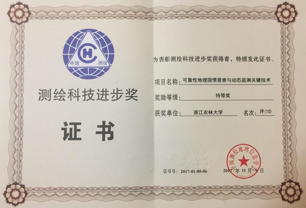 我校測繪專業教師榮獲測繪科技進步獎特等獎