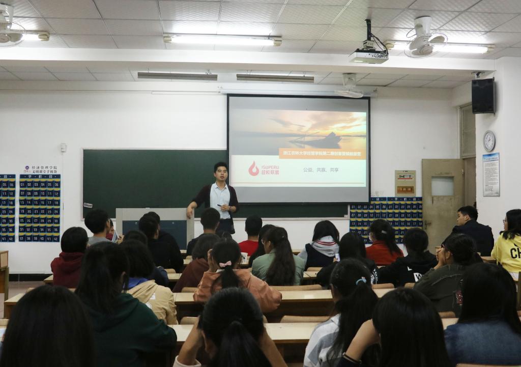 近日,經管學院首屆“思創”文化節能量營開營。此期能量營以“創客營銷”為主題,旨在引導學生不斷挑戰自我、勇于實踐、敢于創新,培養綜合素能。學生辦輔導員、超校聯盟企業負責人、樂清麗顏堂鐵皮石斛有限公司創始人參加活動。