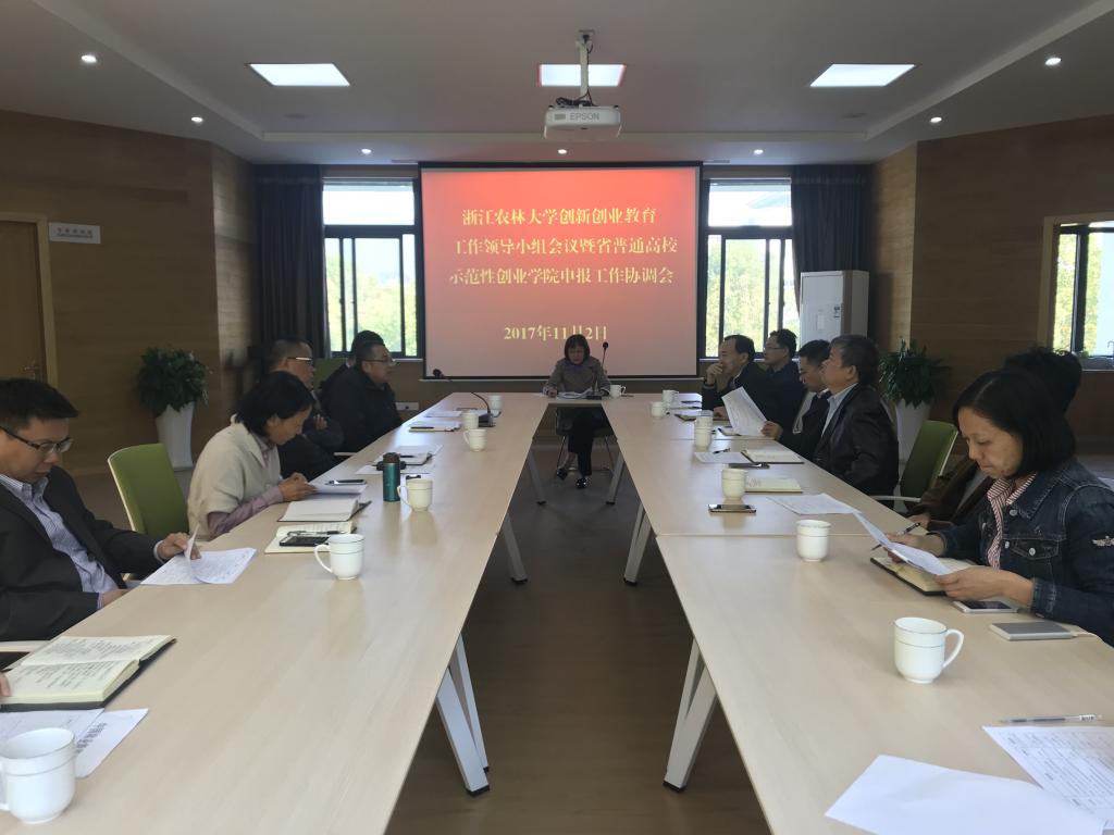 近日,學校召開創新創業教育工作領導小組會議暨部署省普通高校示范性創業學院申報工作,副校長沈月琴主持會議。宣傳部、學工部、戰略處、人事處、教務處、科技處、創業處、設備處、計財處、社會合作處、團委等部門負責人參加會議。