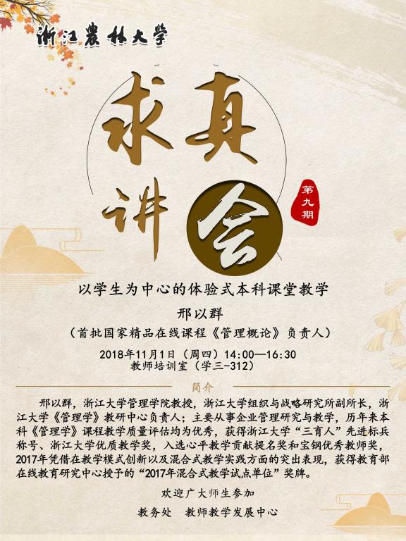 “求真講會”第九期:以學生為中心的體驗式本科課堂教學