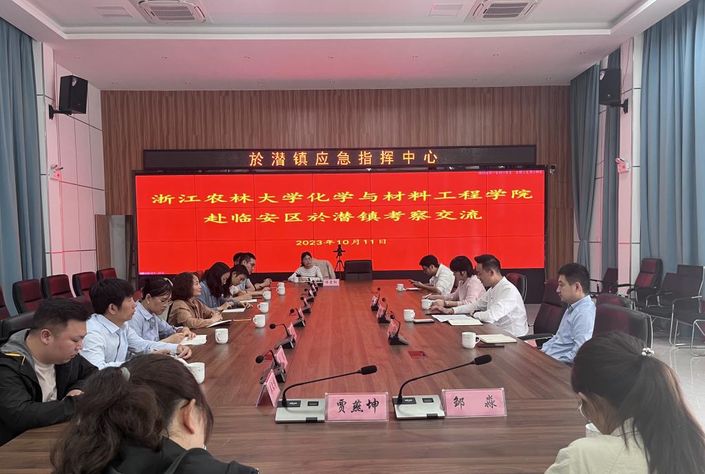 10月11日,化材學院黨委書記謝志新帶隊赴臨安於潛鎮黨委開展黨建聯建座談交流。我院黨委委員李倩、王星、林業工程學科第三黨支部書記雷洪及青年教師代表,於潛鎮鎮長趙超軍、副書記陳健、副鎮長司尚榮參加會議。