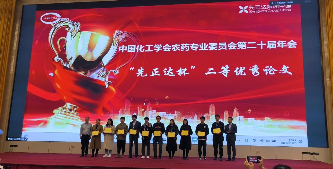 林生院碩士研究生陳智磊、吳云天分別榮獲“先正達杯”優秀論文二等獎、三等獎。碩士研究生李雪松作題為“貝萊斯芽孢桿菌TCS001產脂肽類物質抑菌活性及發酵條件優化”學術報告。
