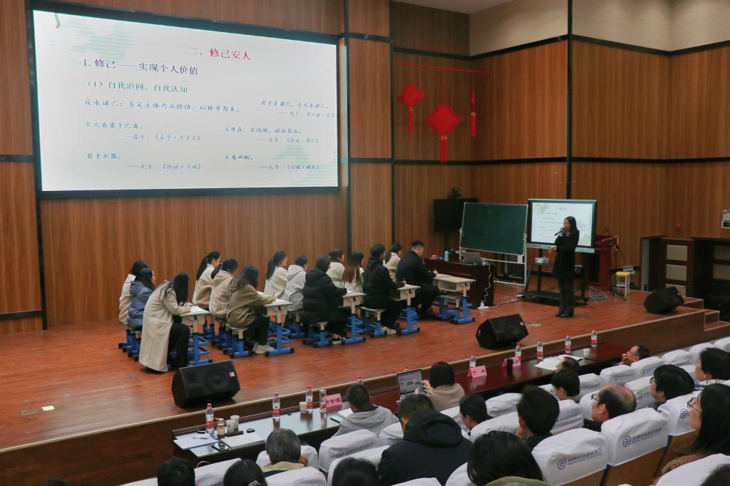 11月30日,由臨安區(qū)教育局和馬院聯(lián)合舉辦“同說中華非遺 同上思政金課”大中小學(xué)思政教育一體化教學(xué)研討會,在杭州天目外國語學(xué)校舉行。馬院副教授、省級名師工作室負(fù)責(zé)人宮瑜主講了《同說中華非遺——中國傳統(tǒng)文化中的主題精神》,學(xué)院全體師生參加。臨安區(qū)中小學(xué)思政教師綜合能力提升培訓(xùn)班學(xué)員,白玉縣思政教師及臨安區(qū)各中小學(xué)思政教師線上近200人參加。