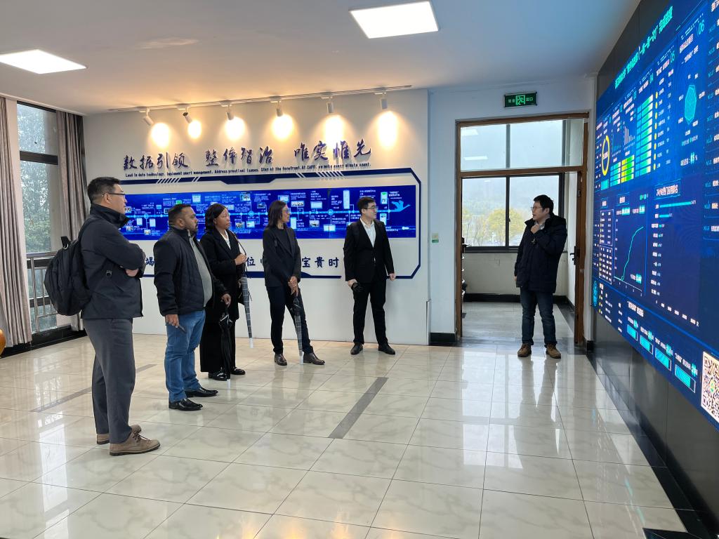 莫路鋒帶領參觀了信息中心“一庫一表一次”應用系統(tǒng)展示走廊和教1智慧教室,詳細介紹了我校信息化建設基本情況,展示了智慧教室建設成果,演示了天目云智慧教學平臺。