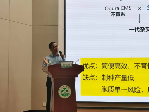 張揚勇研究員從新型DH育種技術——體內單倍體誘導、顯性雄性不育基因的克隆、細胞質雄性不育(Ogura CMS)育性恢復技術、結構變異(SV)驅動甘藍變種快速分化四個方面入手,向與會師生介紹了其團隊幾十年來在甘藍青花菜生物育種方面的研究成果。